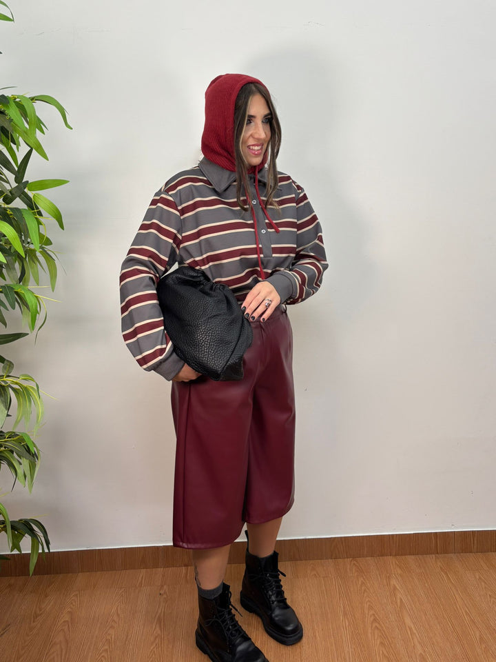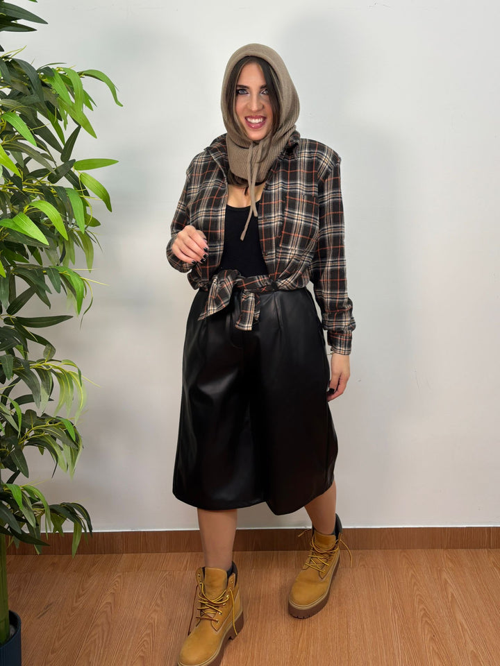 Bermuda in morbida ecopelle con linea ampia e vita elasticizzata sul retro per una vestibilità comoda e femminile. Ideali da abbinare a camicie, maglioni o stivali per un look urban e alla moda firmato Shara Chic