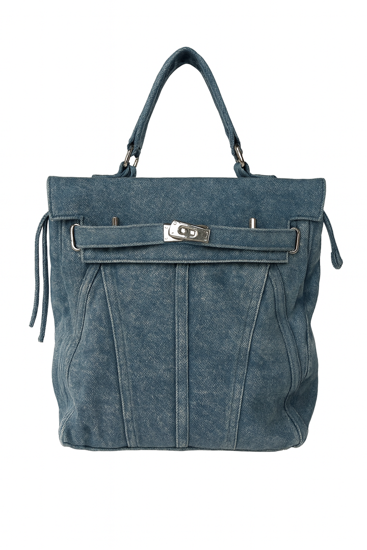 Borsa in denim con dettagli metallici
