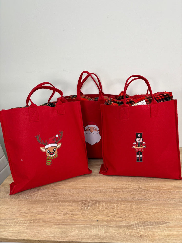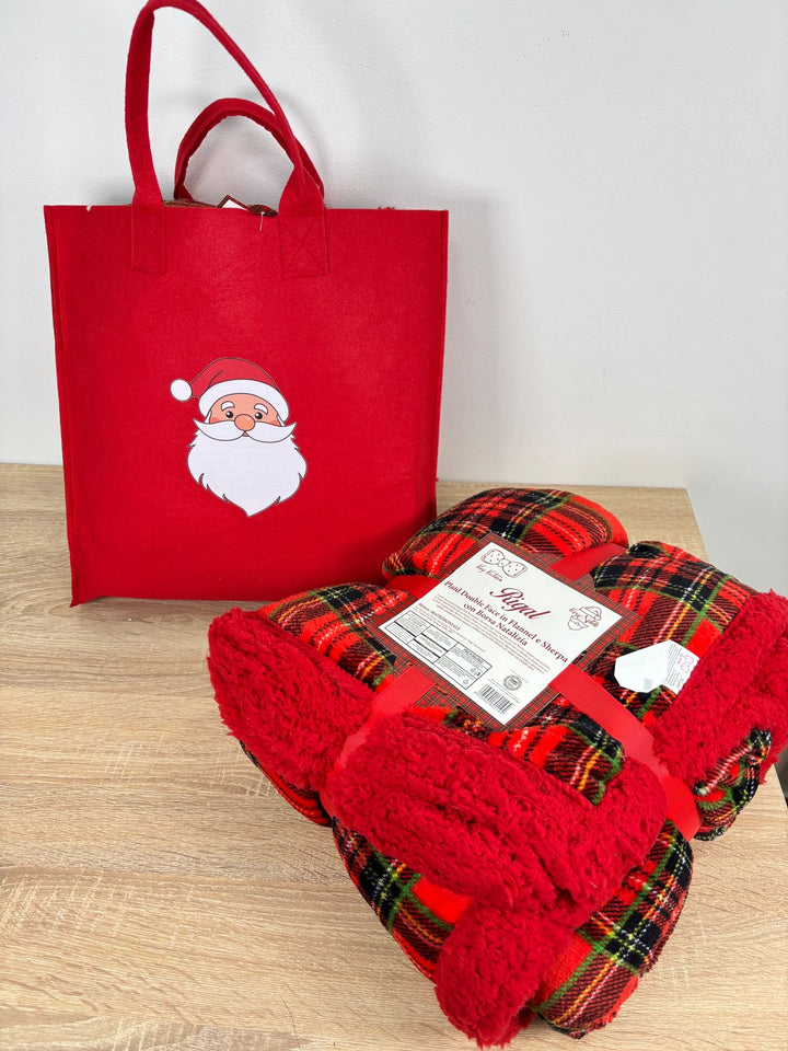 Riscalda le tue feste con questo morbido plaid natalizio scozzese, completo di elegante borsa rossa in feltro. Perfetto come idea regalo o per decorare il salotto, unisce comfort e stile natalizio in un set raffinato e accogliente.