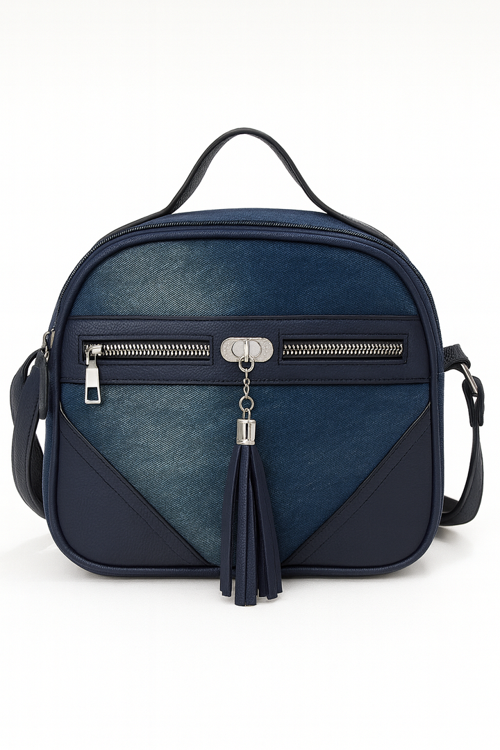 Borsello in denim con dettagli navy