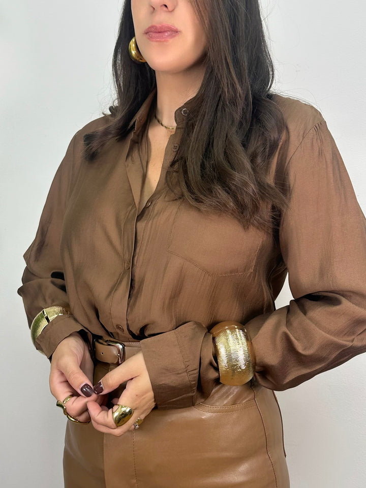 Camicia dal tessuto semi-trasparente, fluida e raffinata, perfetta da indossare sia aperta su top e body che chiusa per un look elegante e minimal. Un capo versatile che si adatta ad outfit casual chic o serali.