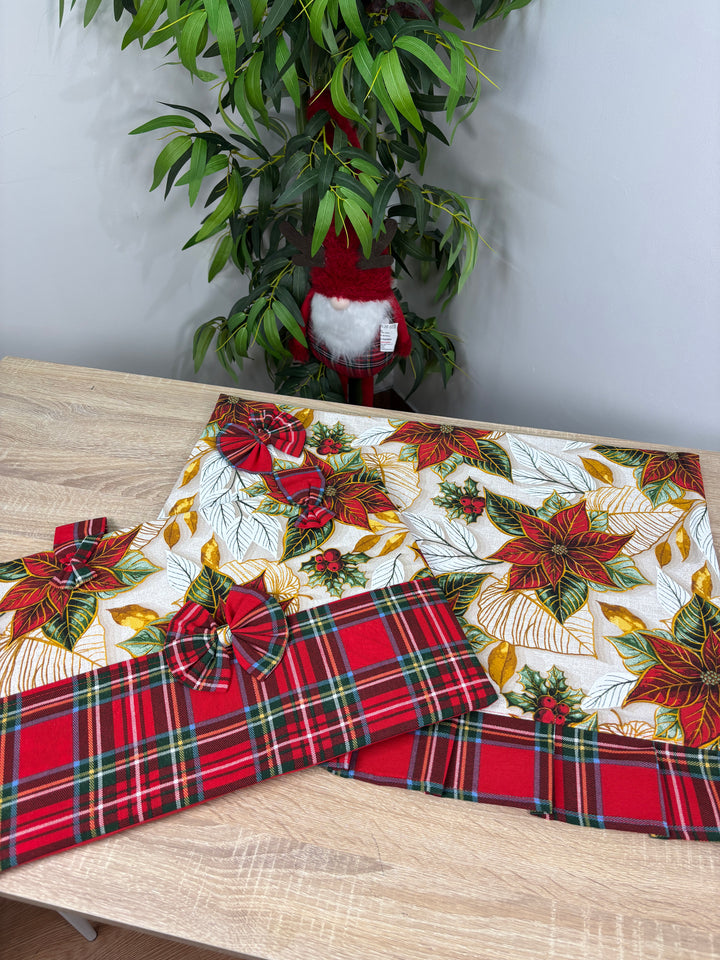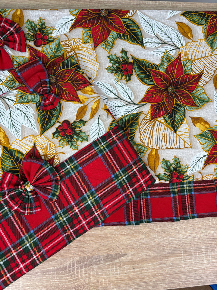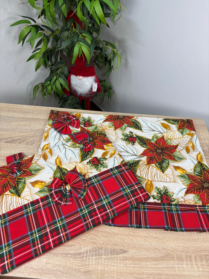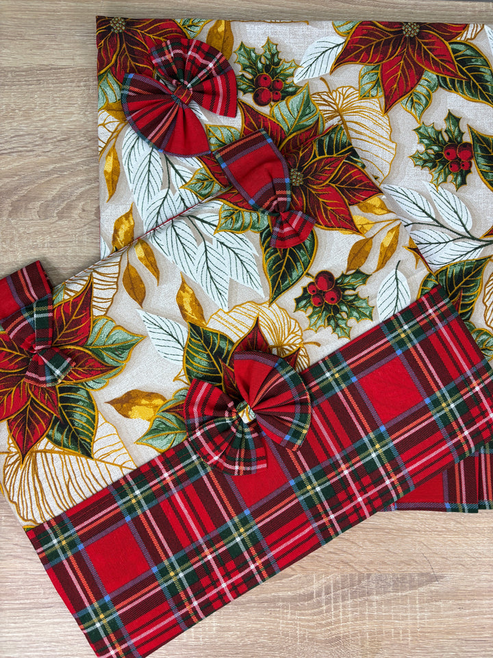 Set in tessuto con stampa Fiori e decori Christmas, rifinito da balza scozzese rossa.