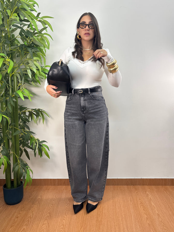 Comodo e versatile, questo jeans modello balloon è perfetto per un look casual ma sempre alla moda. Realizzato in tessuto elasticizzato che garantisce comfort e libertà di movimento.
