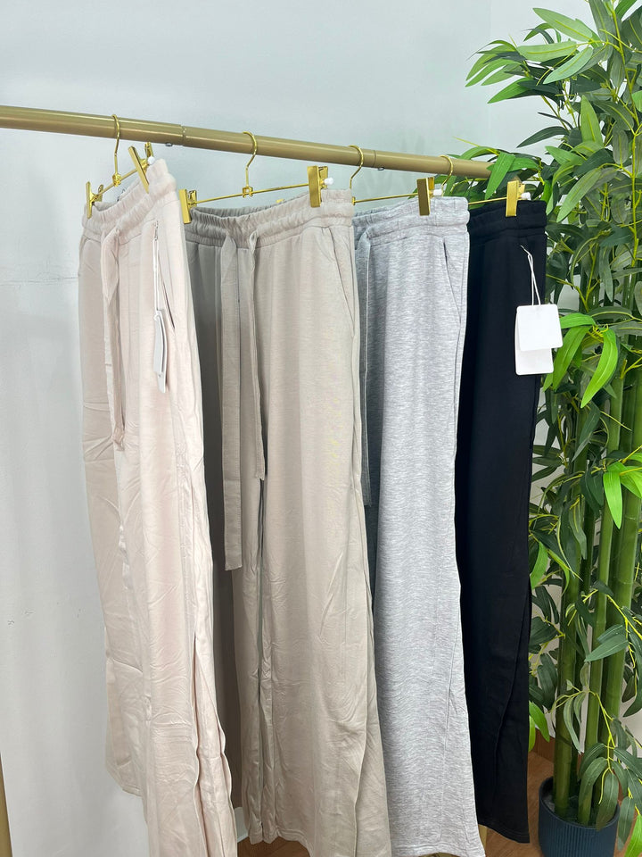 Pantalone tuta super comodo e trendy, con vita alta e cintura coordinata che valorizza la figura. Realizzato in tessuto morbido e leggero, perfetto per un look casual ma curato.