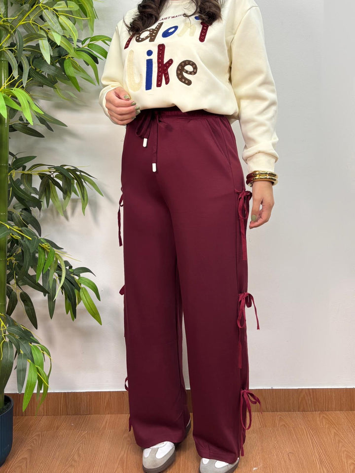 Pantalone tuta con fiocchi laterali