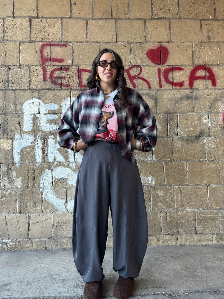 Un modello trendy e comodo che dona un tocco originale al tuo look. Il taglio balloon, ampio sulla gamba e stretto sul fondo, garantisce stile e praticità, perfetto da indossare sia con sneakers che con stivaletti.