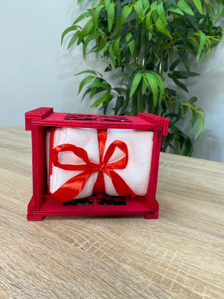 - Cassetta in legno rosso con decoro traforato a fiocco di neve