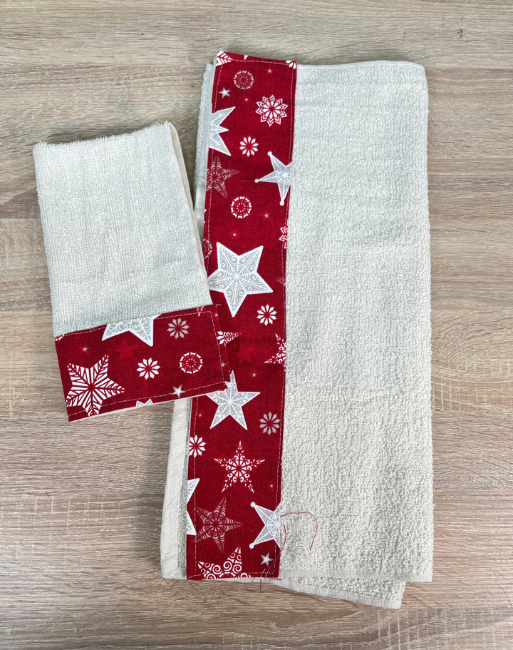 Realizzati in morbida spugna assorbente, impreziositi da un bordo in stoffa natalizia con motivi scozzesi e decorazioni festive, porteranno subito calore e colore nelle feste!
