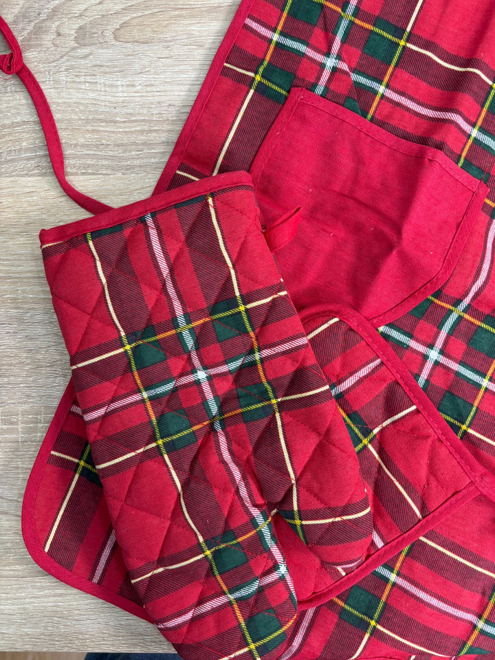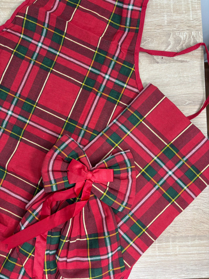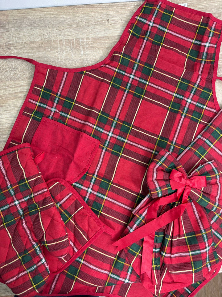 Porta la magia del Natale anche in cucina con questo bellissimo set in fantasia scozzese rossa!
