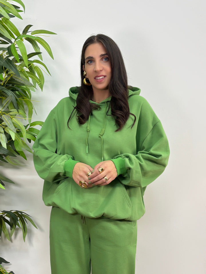 - Felpa garzata taglia unica (veste fino a L) con cappuccio e tasca a marsupio